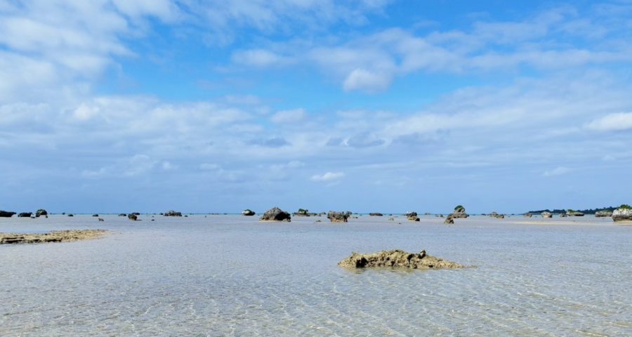 干潮時にはMAPに表示されている「てぃだの里」あたりから1㎞ほど沖に歩いてもほとんど水深は変わりません。しかし潮が上がってきて60㎝になったらその距離を歩くことはかなり大変です。歩いているうちにさらに潮が上がって1mになったら?身長165㎝の私の場合ですともうヘソより深くなっているわけです。そこで30cmの窪みが有って波が出てきたら? ヘソから顎まで40㎝しかないのでもうすでに立ち泳ぎの状態です。その状態で躓いて転んだらもう溺れるでしょう。