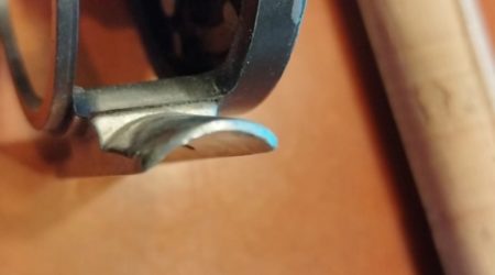 画像のLamsonのかかり具合は見た目にはきつそうで心配ですがしっかりと固定できています。リングの幅は7mmです。対して3mm幅のリングを使った現行OrvisバテンキルとSAGE CLIKCの画像ではフットの端がリングから出ていて見た目にも安心感があります。しかしこれは7mm幅のリングの端っこだけが掛かっているのと同じ状態と言えます。